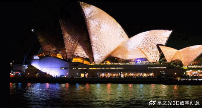 悉尼歌劇院里,人們的舞姿在帆船上綻放。這種特有的本地植物賦予了投影動(dòng)畫(huà)的靈感,從而創(chuàng)造出一幅非凡的作品。
