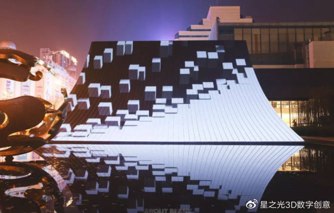 “暮色量子”的光影表演是以現(xiàn)代都市美學(xué)的視角為基礎(chǔ),以建筑的概念設(shè)計(jì)為基礎(chǔ)。