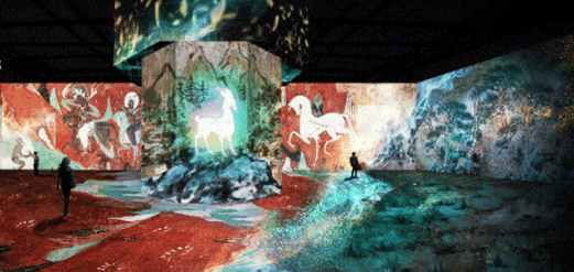 “遇見敦煌 光影藝術(shù)展”將敦煌石窟壁畫彩塑與光雕投影技術(shù)相結(jié)合,讓人瞬間有穿越千年之感,仿佛身臨其境來到莫高窟,見到了真實(shí)壁畫。