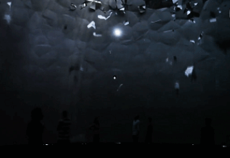 整個展示的場地呈現(xiàn)出的是一種特殊的穹頂結(jié)構(gòu),觀眾處于一個封閉的空間內(nèi),可以感受各種各樣的視覺效果的變化。