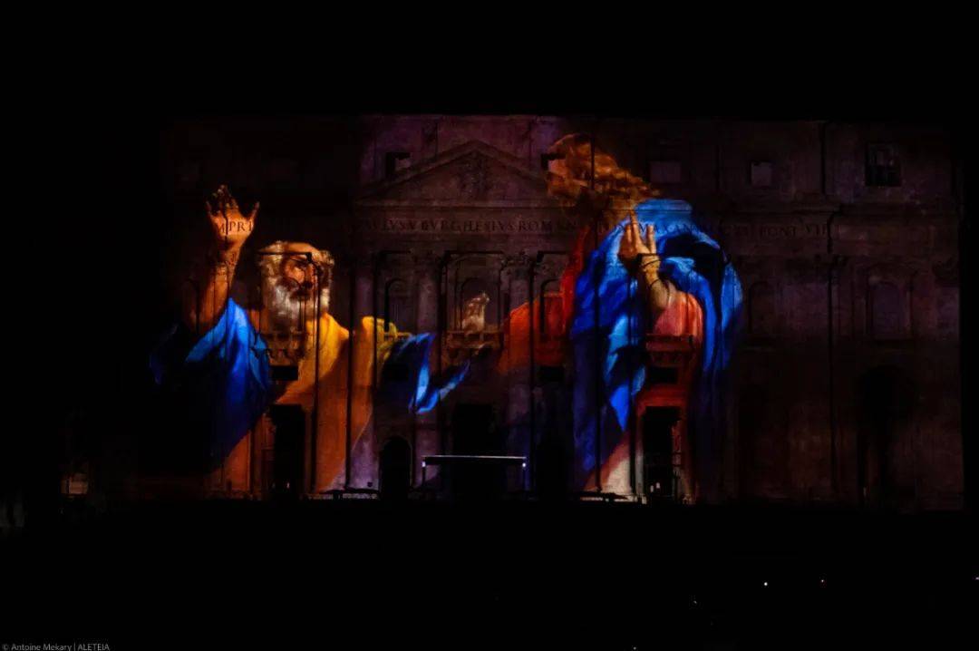 因此,教會以燈光秀的方式點亮圣伯多祿大教堂。教堂正立面每15分鐘(晚上9點到11點)被點亮(視頻投影)一次,向人們講述首任教宗圣伯多祿的故事,以此作為即將到來的禧年準備工作的一部分。