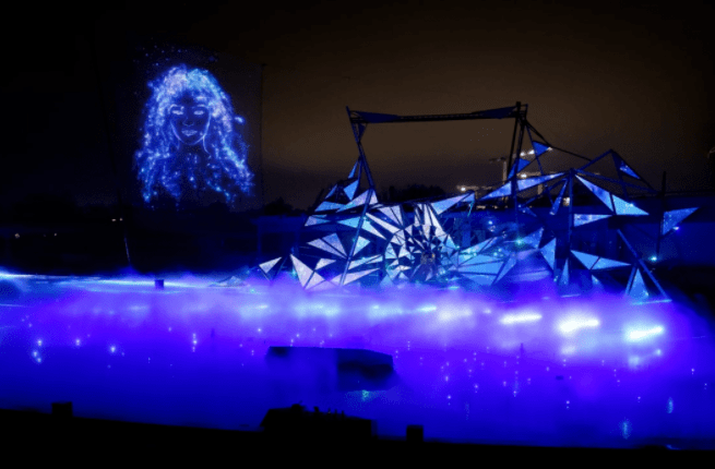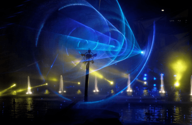 本次演出從不同形式表現(xiàn)由水、激光、影像匯集而成的夢(mèng)幻與真實(shí)、科技與現(xiàn)實(shí)之間的神奇魅力。