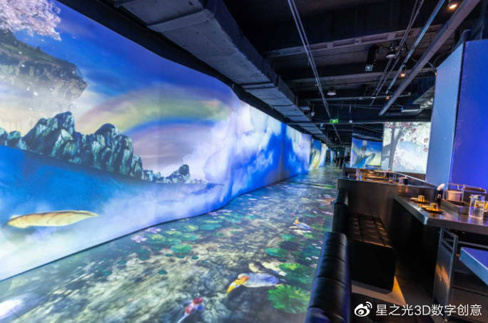全息3D投影餐廳,是以建筑投影、智能交互為技術(shù)的全新感官餐廳,將傳統(tǒng)的味覺(jué)體驗(yàn)升華為觸覺(jué)、視覺(jué)、味覺(jué)等多方面的體驗(yàn),讓消費(fèi)者在品嘗美味的同時(shí),也可以沉浸在投影的世界中,與各種智能交互,感受到高科技帶來(lái)的新鮮感。