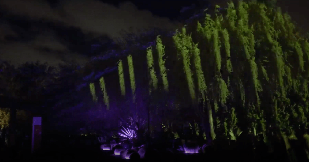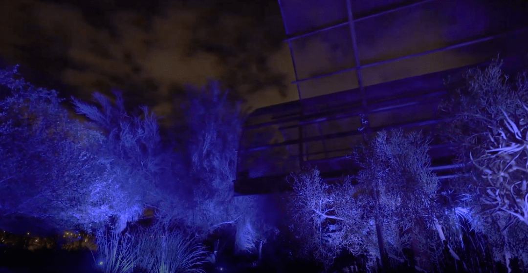 巧妙運(yùn)用投影和照明,利用植物園不同的地勢特點(diǎn),將夜間植物園打造得與白天截然不同。