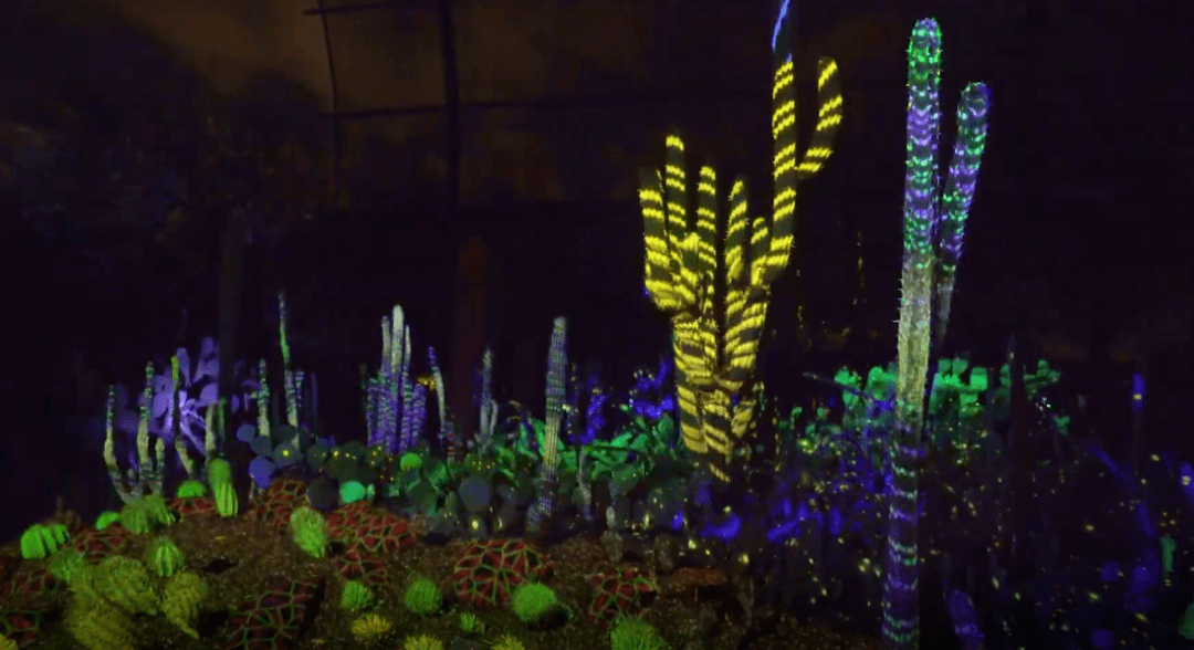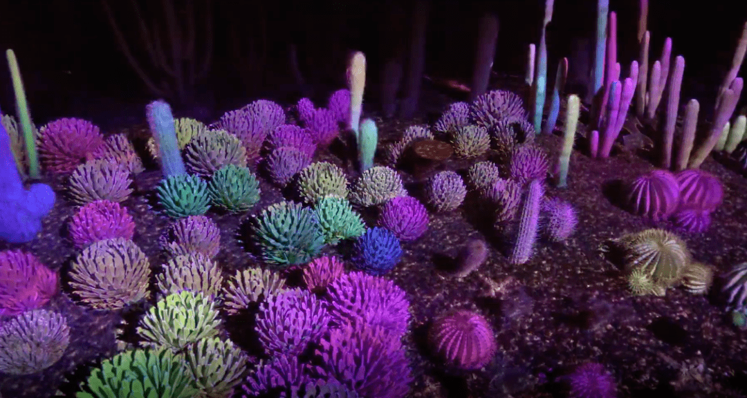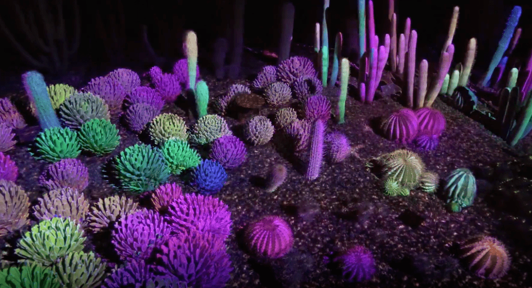 沙漠植物園成立于1937年。視覺藝術(shù)創(chuàng)意團(tuán)隊(duì) Klip Collective將光影與沙漠植物結(jié)合在一起,打造了名為 Electric Desert的獨(dú)特藝術(shù)體驗(yàn)。