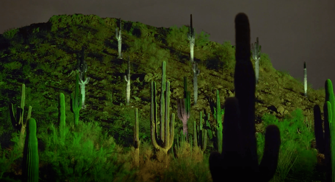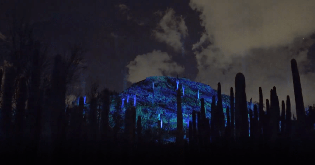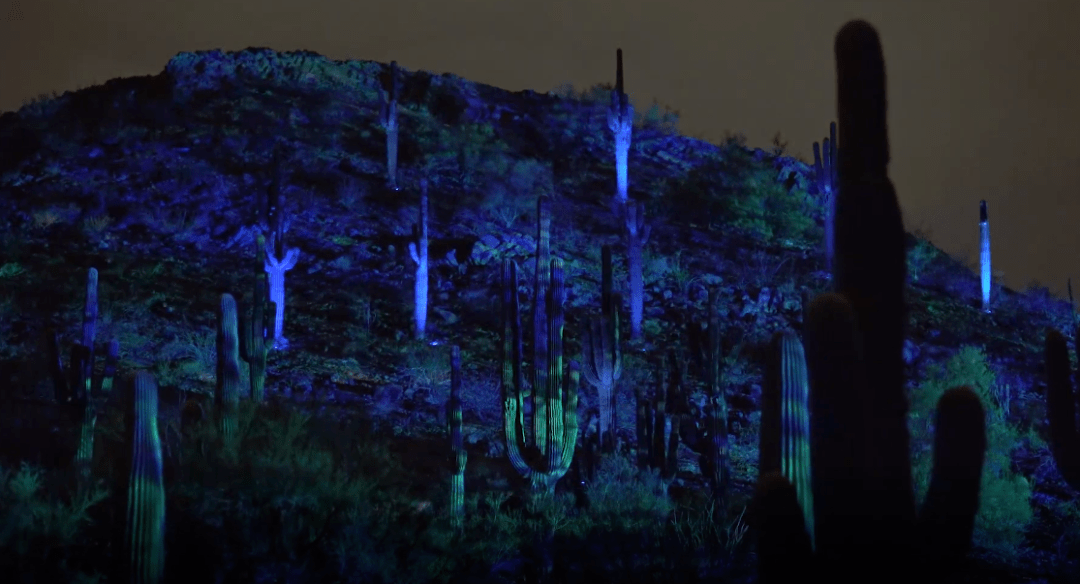 Desert Chorale利用一片生長著巨柱仙人掌的小山坡創(chuàng)作展覽的內(nèi)容,每隔20分鐘就會(huì)上演一次光影表演。