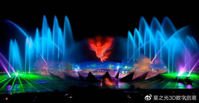 燈光和水秀,打造一場晝夜互動(dòng)的視覺盛宴,水秀表演形式多樣:水幕表演,數(shù)碼水幕,音樂噴泉,水秀特效等,在白天,全景音樂噴泉為游人提供唯美的體驗(yàn);晚上,以水幕、激光、音樂等多媒體手段,展現(xiàn)電光流影,帶來浸潤式水秀燈光體驗(yàn)。