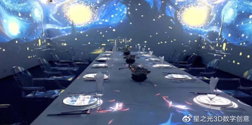 所謂5D全息餐廳就是一種全新的用餐空間,可以隨意穿梭于多種主題場景,不同場景的主題轉換,與裸眼3D視覺技術相結合,仿若置身于海洋、星空、城堡、花海之中。