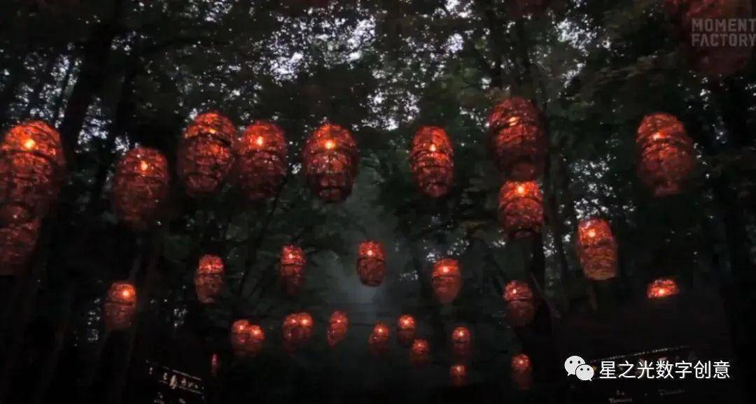 景物與燈光完美結(jié)合,配上特定的音樂,營(yíng)造出一種神秘且空靈的感覺。