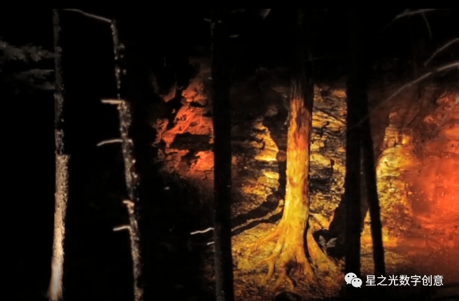 Moment Factory運(yùn)用了原住民傳說之中的神秘色彩,巧妙地與光影藝術(shù)效果進(jìn)行堆疊,給森林注入了神秘且魔幻的色彩。