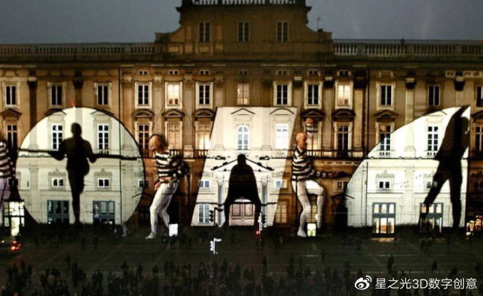 將舞蹈演員的運動運用于建筑立面的動態(tài)投射,產(chǎn)生了一種新奇而又驚人的視覺效果。