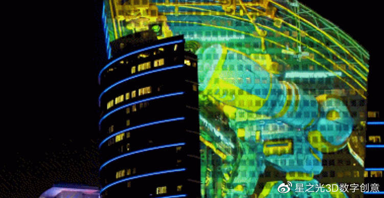迪拜城市 FestivalCity舉行了一次水光投射表演,該作品是由 Laservision Mega Media的一個(gè)小組所設(shè)計(jì)的。